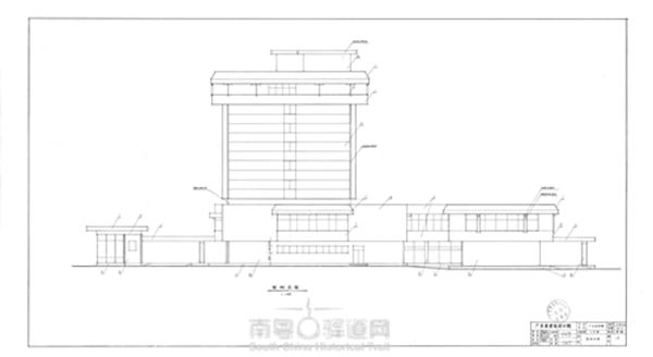 廣東迎賓館3號樓(白云樓)建筑的南向立面圖,廣東省建筑設計研究院提供。