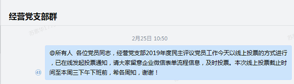 經(jīng)營(yíng)黨支部利用企業(yè)微信的視頻會(huì)議和表單流程功能,嚴(yán)格按照評(píng)議程序,認(rèn)真組織開(kāi)展了2019年度民主評(píng)議黨員工作。同時(shí),還積極開(kāi)展線上交流互動(dòng),支部黨員們談學(xué)習(xí)感悟和思想狀態(tài),使支部及時(shí)掌握黨員的所思所想,精準(zhǔn)做好關(guān)心關(guān)愛(ài)工作,為抗擊疫情和推進(jìn)復(fù)工復(fù)產(chǎn)營(yíng)造了良好氛圍,提升了支部的凝聚力和戰(zhàn)斗力。
