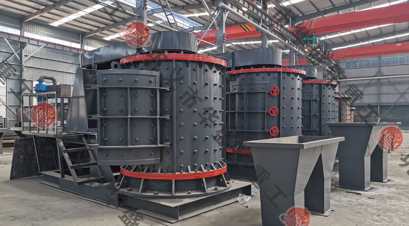 物料由機(jī)器上部垂直落入高速旋轉(zhuǎn)的葉輪內(nèi),在高速離心力的作用下,與另一部分以傘狀形式分流在葉輪四周的物料產(chǎn)生高速撞擊與粉碎,物料在互相撞擊后,又會在葉輪和機(jī)殼之間以物料形成渦流多次的互相撞擊、摩擦而粉碎,從下部直通排出,形成閉路多次循環(huán),由篩分設(shè)備控制達(dá)到所要求的成品粒度。